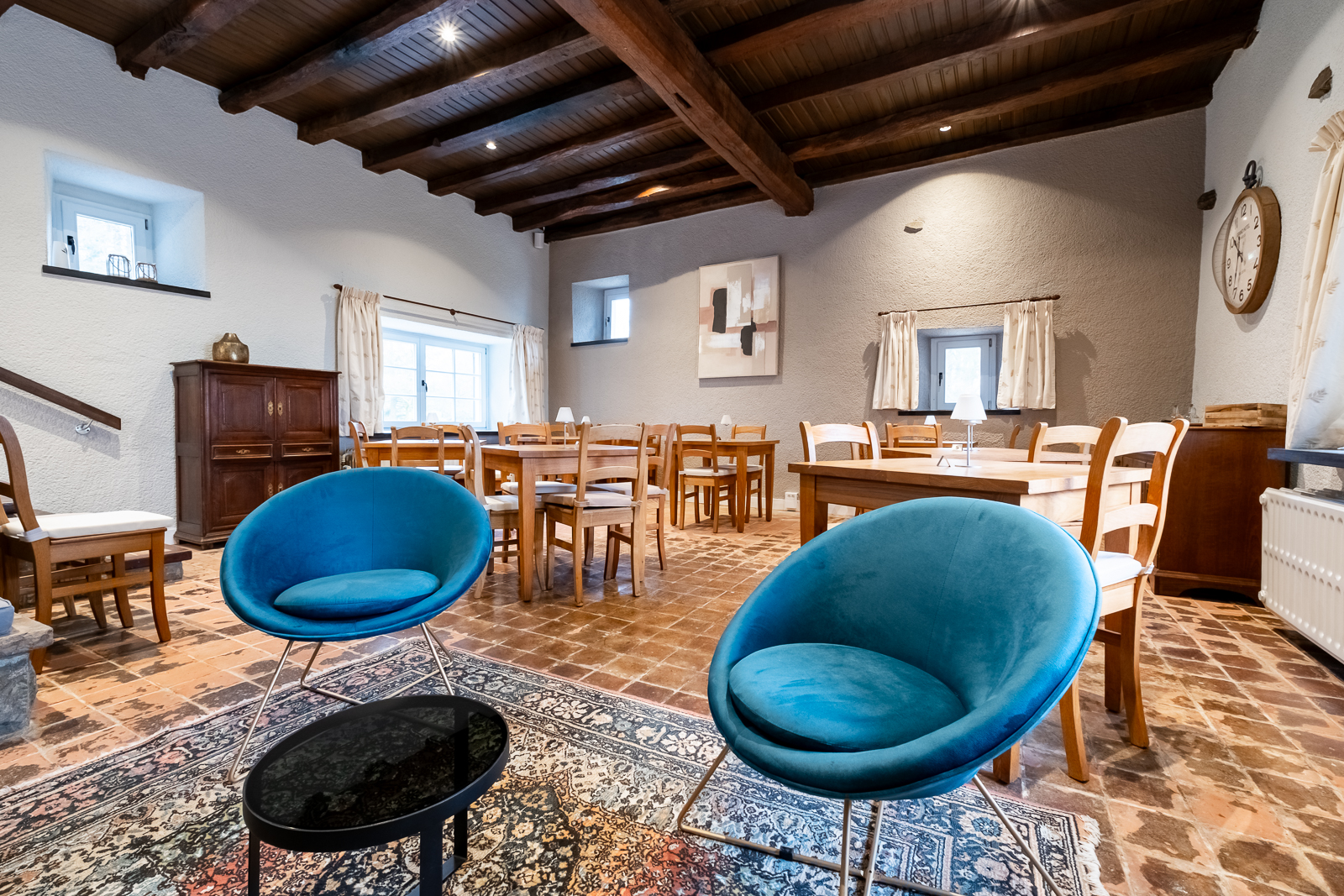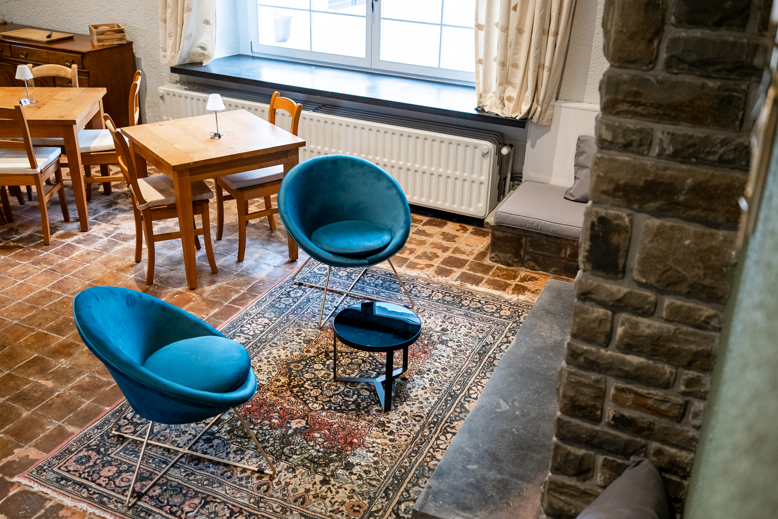 De salon staat open voor hotelgasten en externe bezoekers en nodigt uit tot een ontspannen pauze, voor een drankje en een selectie van zoete en hartige hapjes uit onze keuken.